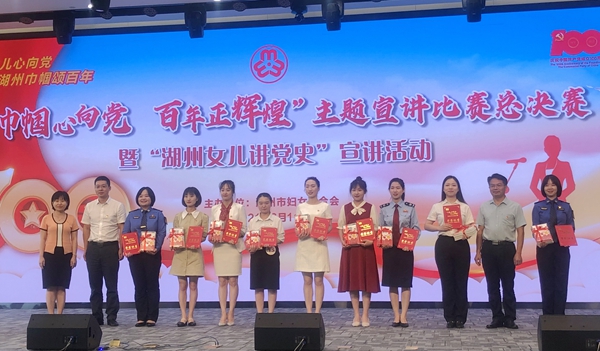 为庆祝中国共产党成立100周年,深入开展党史学习教育,进一步团结引领广大妇女群众听党话、跟党走,在全社会营造学“四史”、颂党恩的浓厚氛围,6月11日下午,湖州市妇联举办“巾帼心向党 百年正辉煌”主题宣讲比赛总决赛暨“湖州女儿讲党史”宣讲活动。我校马克思主义学院何燕老师和教师教育学院学生钱高艺入围决赛,并最终获得了一等奖和三等奖的好成绩。