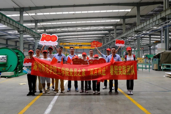 工学院“奋斗百年路,启航新征程”暑期社会实践团带领同学们走访湖州市优秀企业,把党史宣讲的小课堂开到企业中、车间里。