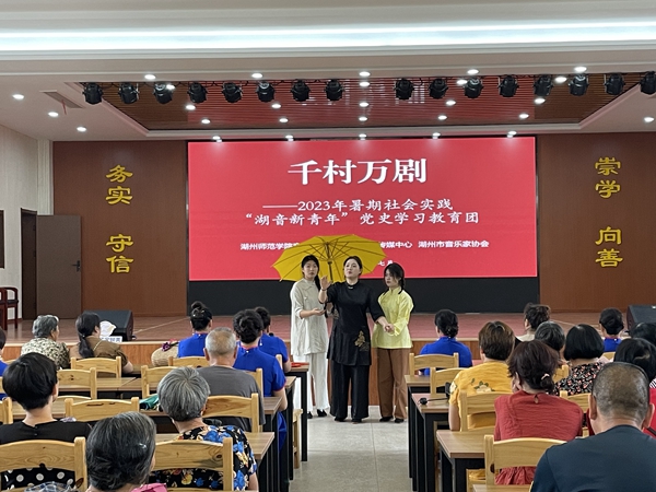 近日,在长兴县和平镇滩龙桥村文化礼堂,音乐学院千村万剧——“湖音新青年”暑期社会实践团队27名师生正在倾情演绎原创音乐剧《江南红嫂》,将现场观众拉回到当年激情燃烧、热血澎湃的革命岁月。