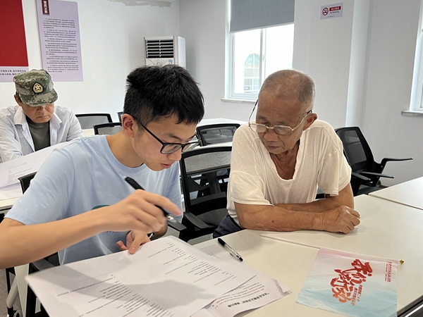 在朝阳街道小红砖宣讲基地,社区的老党员们齐聚一堂。“00后”的宣讲员陈奕冰正在给大家讲述共产党人不忘初心、牢记使命的时代故事。“有些人从山里走了,就不再回来,你从城里回来,却再没有离开。”陈奕冰结合思政专业特长,以“七一勋章”获得者黄文秀为例,将她执意下乡加入脱贫队伍,踏遍山头只为奉献青春的伟大脱贫攻坚精神融入到整个宣讲之中。现场气氛热烈,老党员们纷纷参与其中,结合自身经历深情讲述党的故事。这场别开生面的宣讲让学生们从“台上讲”到“台下听”,让老党员们从“台下听”到“台上讲”。实践队员们不仅宣讲了党的二十大精神,更牢记老党员几十年如一日听党话、跟党走的坚定信仰,大家纷纷表示要继续做好传声筒,当好播种机,发扬好党的优良传统,赓续好党的精神血脉。