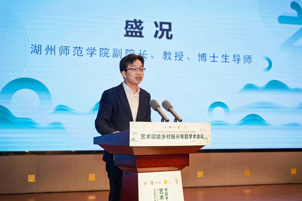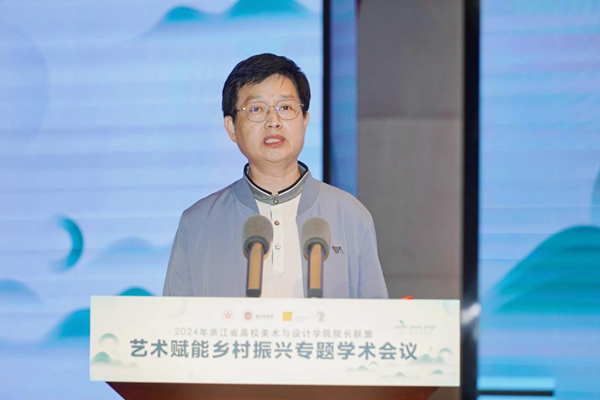 周斌在致辞中指出,建设宜居宜业和美乡村是全面建设社会主义现代化国家的重要内容,也是全面实施乡村振兴战略的总要求。推进并强化地方高校参与乡村建设,是加快实现乡村全面振兴的核心内容与关键环节,也是彰显高校履行时代使命和增强社会服务能力的重要表现。高校可以利用自身的教学科研资源、人才优势,为乡村提供技术支持、人才培养和文化创新等服务,促进乡村振兴的全面发展。他期待以本次“艺术赋能乡村振兴”专题学术会议为契机,推动艺术设计服务乡村振兴,探讨艺术赋能乡村振兴高效路径,推进浙江省美术与设计教育的高质量发展。