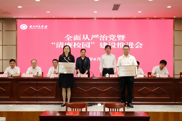 会上,党委书记许慧霞、副校长(主持行政工作)盛况为学校首批清廉单元示范点授牌。许慧霞与二级学院、附属医院党组织主要负责人代表签订《党风廉政建设责任书》。最后,全体参会人员共同观看了警示教育片《一刻不停 惩治腐败——湖州市党员领导干部违纪违法案例剖析》。