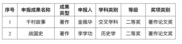 教育部高等学校科学研究优秀成果奖(人文社会科学)是目前我国高校哲学社会科学领域的最高奖项,最具公信力和影响力,每三年评选一次,迄今已成功进行了九届,是教育部为表彰高校哲学社会科学工作者取得的突出成绩、展示高校社科界服务党和国家事业发展的重大理论与实践成果的一项重要举措。本届获奖成果共1496项(含香港、澳门高校获奖成果),其中一等奖125项,二等奖545项,三等奖602项,普及读物奖21项,青年成果奖203项。我校获得两项二等奖,是学校以有组织的科研推动学科建设、学术发展所取得成果的集中体现,也是学校在创大拼“博”进程中所取得的一项标志性业绩。