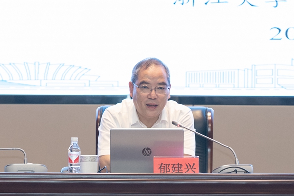 会议邀请浙江工商大学党委书记郁建兴作了题为《在大学治理现代化大道上快速奔跑》的辅导报告。他从时代之问、使命与回归、浙江工商大学的探索、未来大学的无尽前沿等四个方面,对实现大学治理现代化进行了系统的阐述。他表示,当今世界处于一个巨变时代,正面临时代和新技术的挑战,在此背景下大学应重新思考教育与社会、国家和全球的关系,要反思教育、重塑教学、再定义大学。他结合大学的使命强调要回归教育本源,回归大学精神,教育要在精神层面让人有获得感和成长感。郁建兴表示,卓越的大学要有更高的站位和目标,坚持为党育人、为国育才;要有更实更细的体制机制,打造好大学治理现代化的三根链条,即学生成长链、教师发展链、纵向智治链;要有更丰硕的产出,矢志于成为新人才、新科技、新学术的策源地;要具备更和谐、更有活力的组织文化。他分享了浙江工商大学在大学治理现代化中的探索与实践,以及对未来大学新形态的思考,未来的大学不仅仅是技术赋能,更是技术与制度双向互构并系统重塑形成新的大学治理形态。