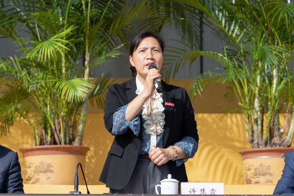 在全校师生们热烈欢呼声中,许慧霞宣布我校第二十七届运动会开幕。