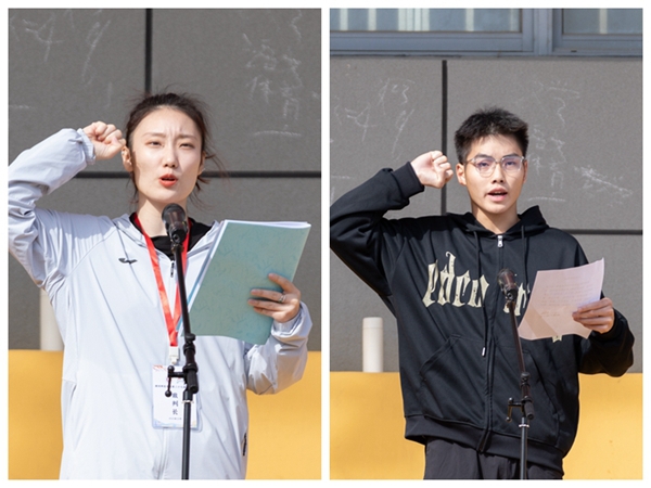 裁判员代表、体育学院赵一玥老师,运动员代表、安定书院李恩瑞同学分别郑重宣誓。