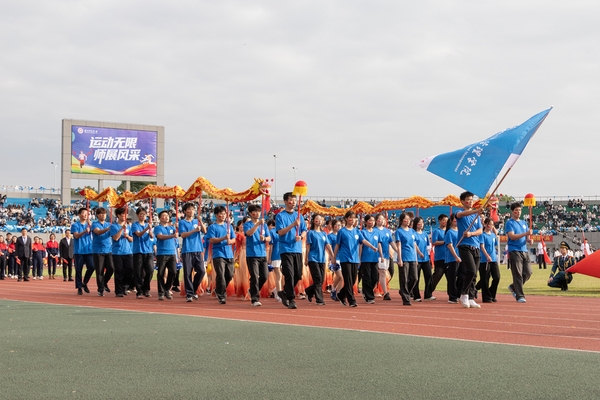 国际教育学院的留学生们身着民族特色服饰、手持各国国旗,以异域风情的舞蹈展现着多元文化魅力,展示了开放包容、热情友好的精神风貌;继续教育学院方阵步伐稳健、气势昂扬,展现着乐学笃行、继往开来的信心;教师八段锦方阵身着整齐服装,以八段锦表演展现千年养生功法的魅力,为运动会注入了文化底蕴;体育学院的武术表演和舞龙舞狮表演将开幕式推向高潮,高难度的动作伴随着激昂的旋律,展现了体院人的激情与活力。